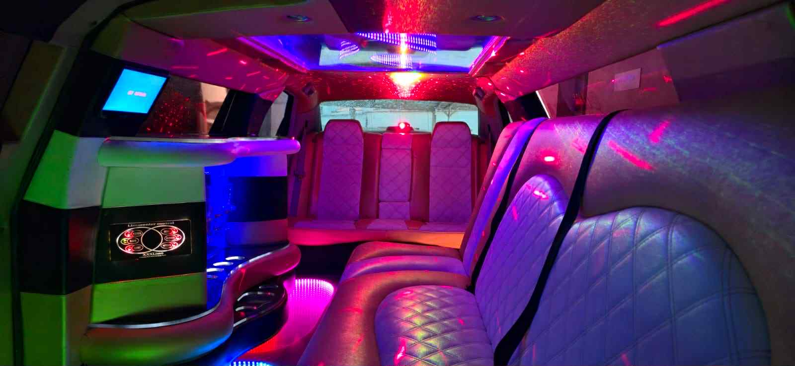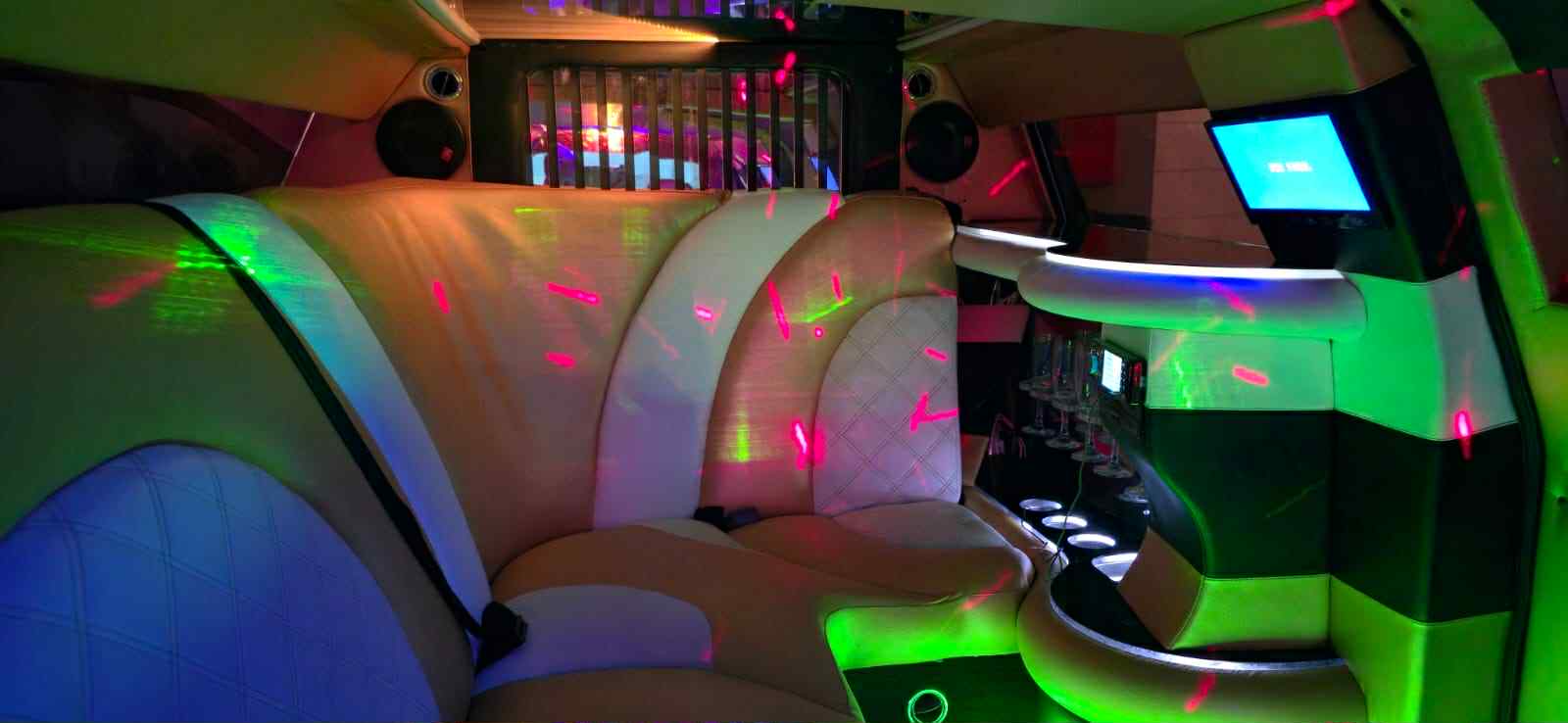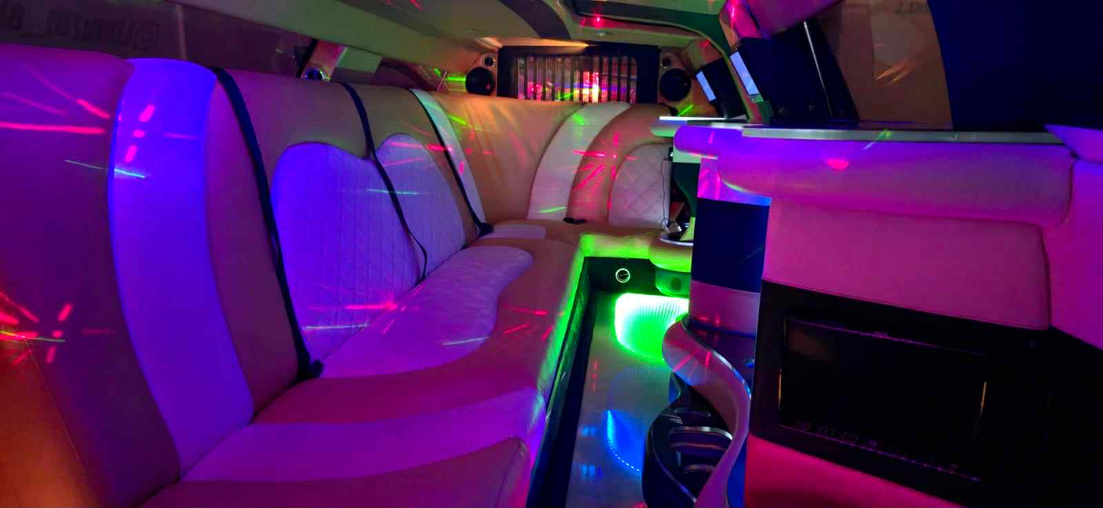 Decoração da limousine personalizada ao gosto do cliente e ao encontro do tipo de evento.