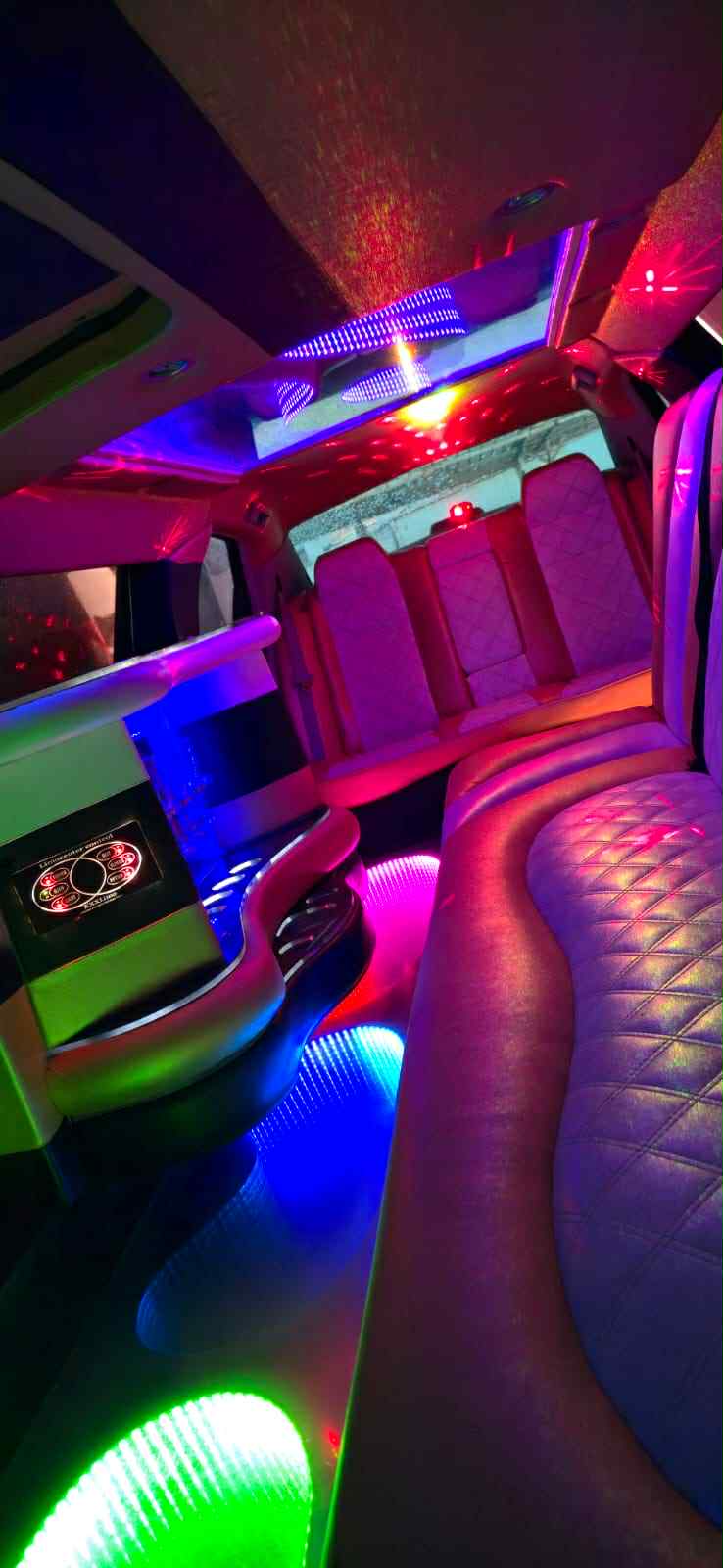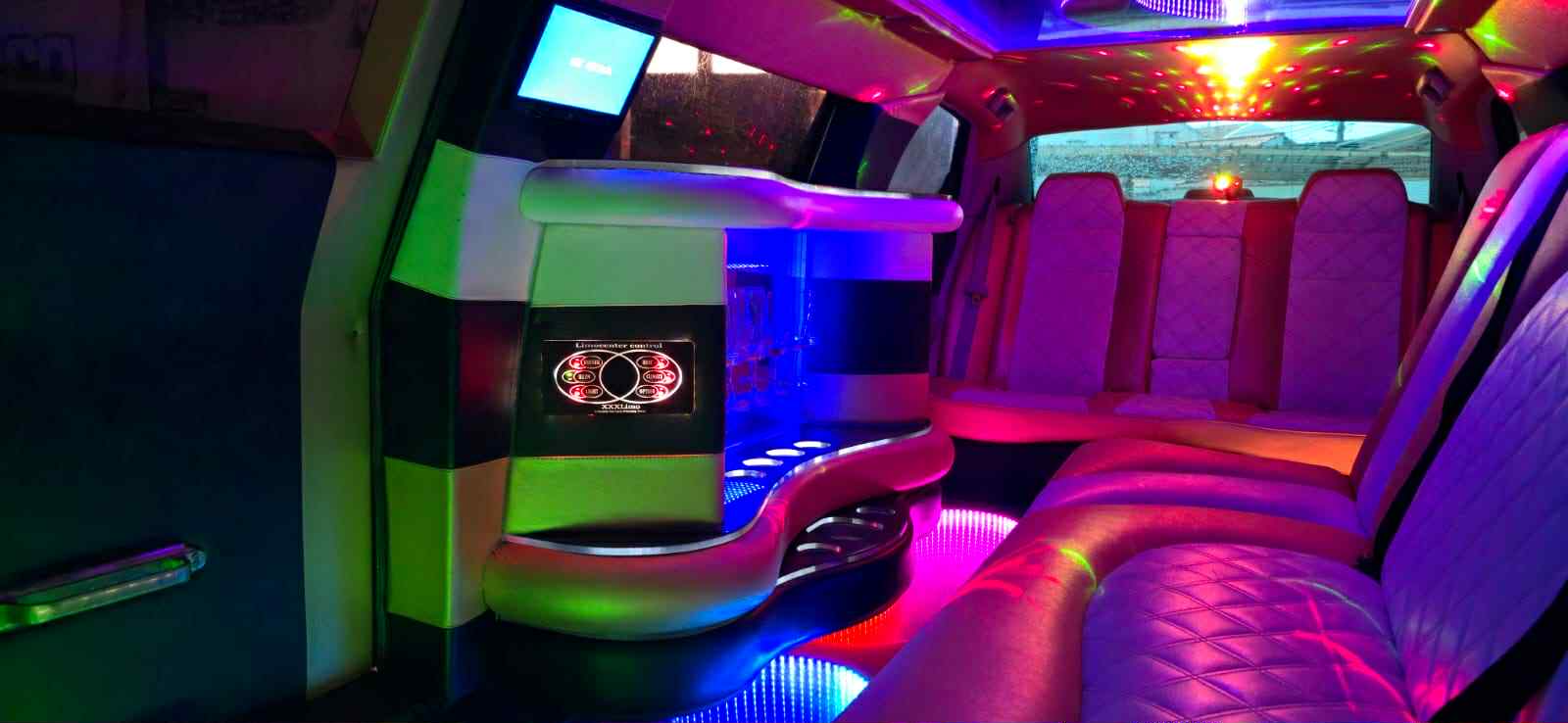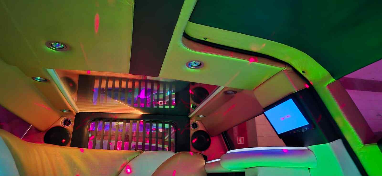 Decoração da limousine personalizada ao gosto do cliente e ao encontro do tipo de evento.
